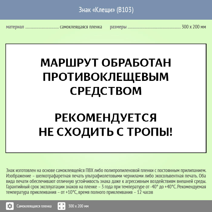 Знак «Клещи», B103 (пленка, 400х300 мм) в Бердске купить