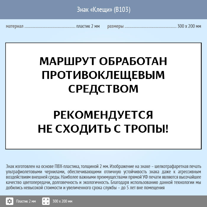 Знак «Клещи», B103 (пластик, 400х300 мм) в Бердске купить