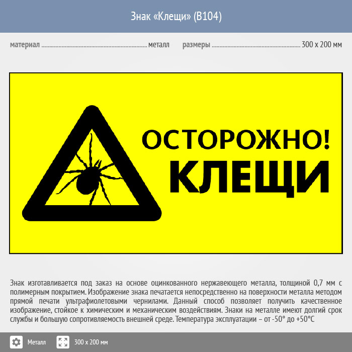 Знак «Осторожно! Клещи», B104 (металл, 400х300 мм) в Бердске купить
