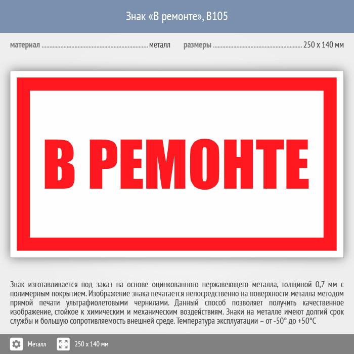Знак «В ремонте», B105 (металл, 250х140 мм) в Бердске купить