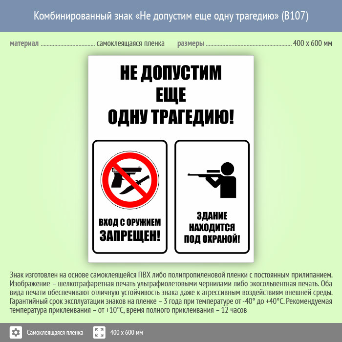 Комбинированный знак «Не допустим еще одну трагедию», B107 (пленка, 400х600 мм) в Бердске купить