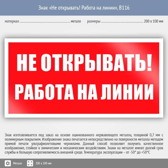 Знак «Не открывать! Работа на линии», B116 (металл, 200х100 мм) в Бердске купить