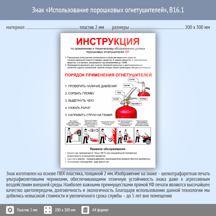 Знак «Использование порошковых огнетушителей», B16.1 (пластик, 200х300 мм) в Бердске купить