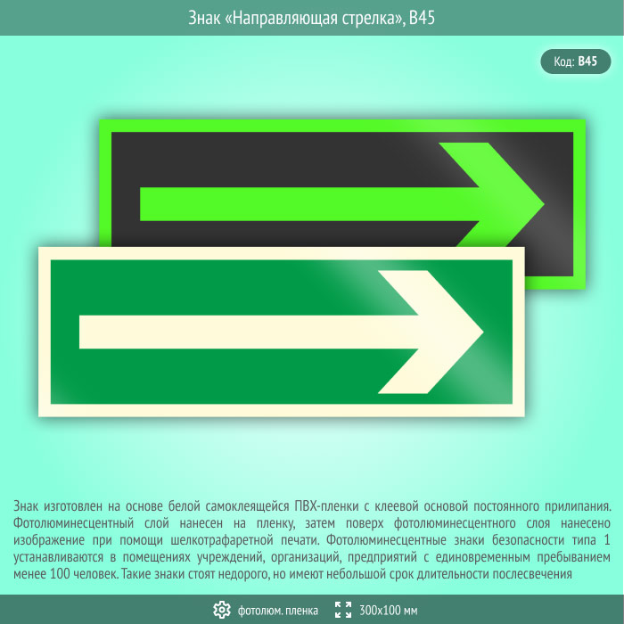 Знак «Направляющая стрелка», B45 (фотолюминесцентная пленка, 300х100 мм) в Бердске купить