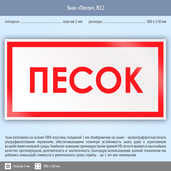 Знак «Песок», B12 (пластик, 300х150 мм) в Бердске купить