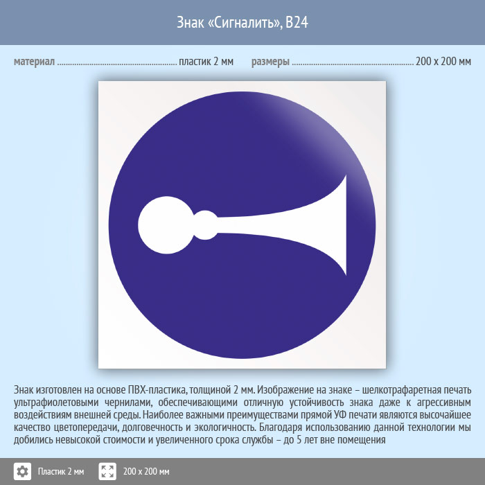 Знак «Сигналить», B24 (пластик, 200х200 мм) в Бердске купить