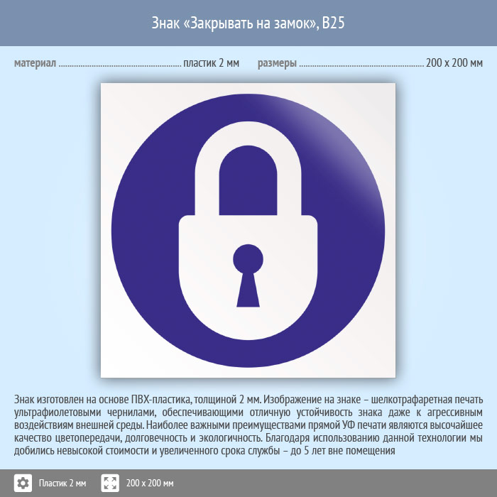Знак «Закрывать на замок», B25 (пластик, 200х200 мм) в Бердске купить