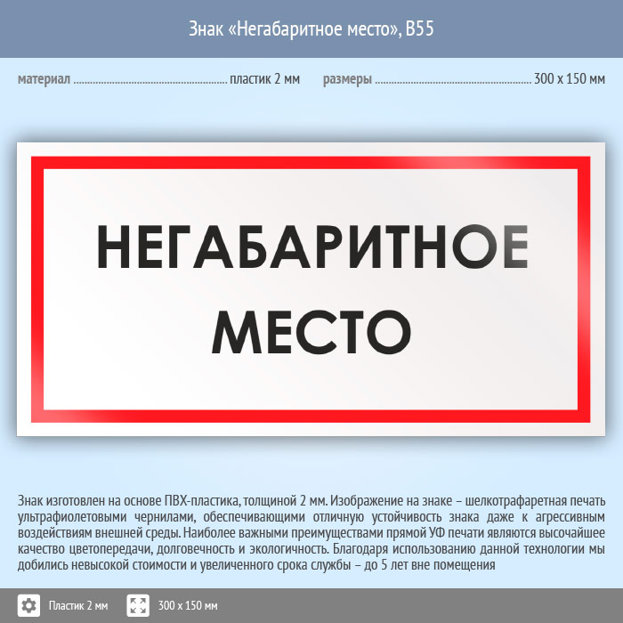 Знак «Негабаритное место», B55 (пластик, 300х150 мм) в Бердске купить