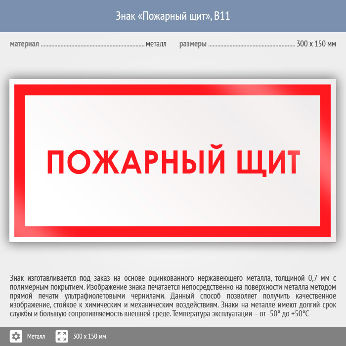 Знак «Пожарный щит», B11 (металл, 300х150 мм) в Бердске купить
