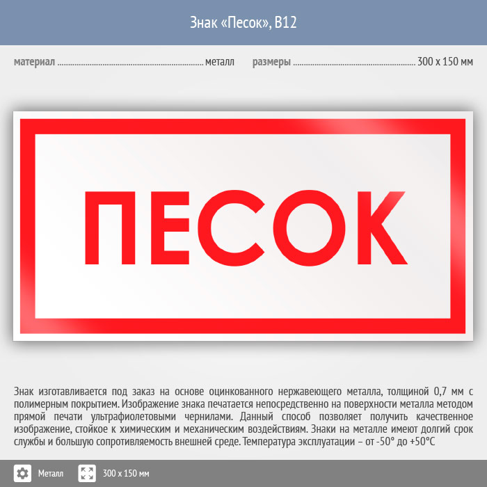 Знак «Песок», B12 (металл, 300х150 мм) в Бердске купить