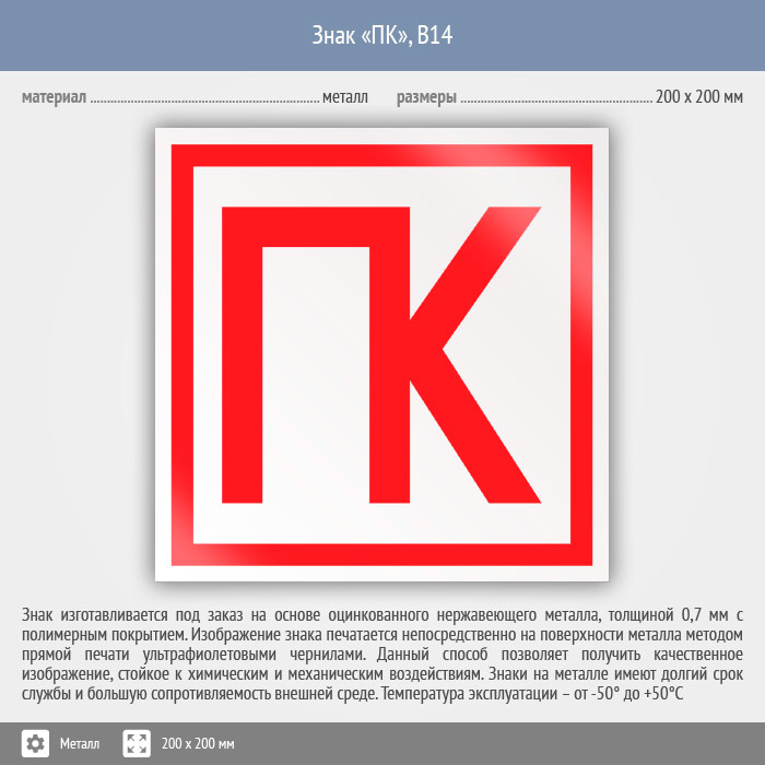 Знак «ПК», B14 (металл, 200х200 мм) в Бердске купить
