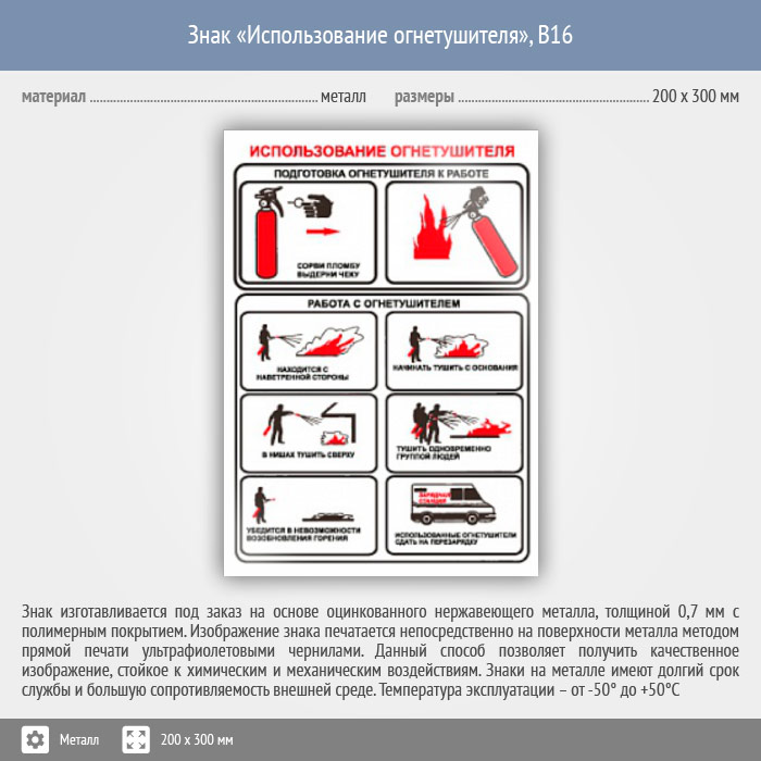 Знак «Использование огнетушителя», B16 (металл, 200х300 мм) в Бердске купить
