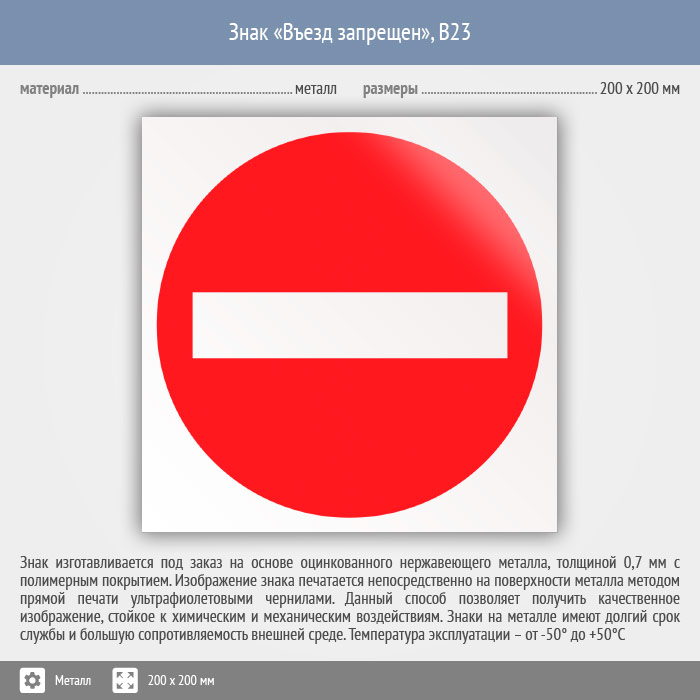 Знак «Въезд запрещен», B23 (металл, 200х200 мм) в Бердске купить