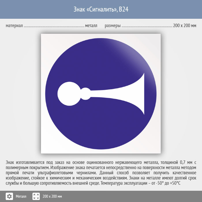 Знак «Сигналить», B24 (металл, 200х200 мм) в Бердске купить