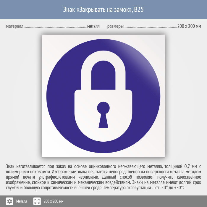 Знак «Закрывать на замок», B25 (металл, 200х200 мм) в Бердске купить