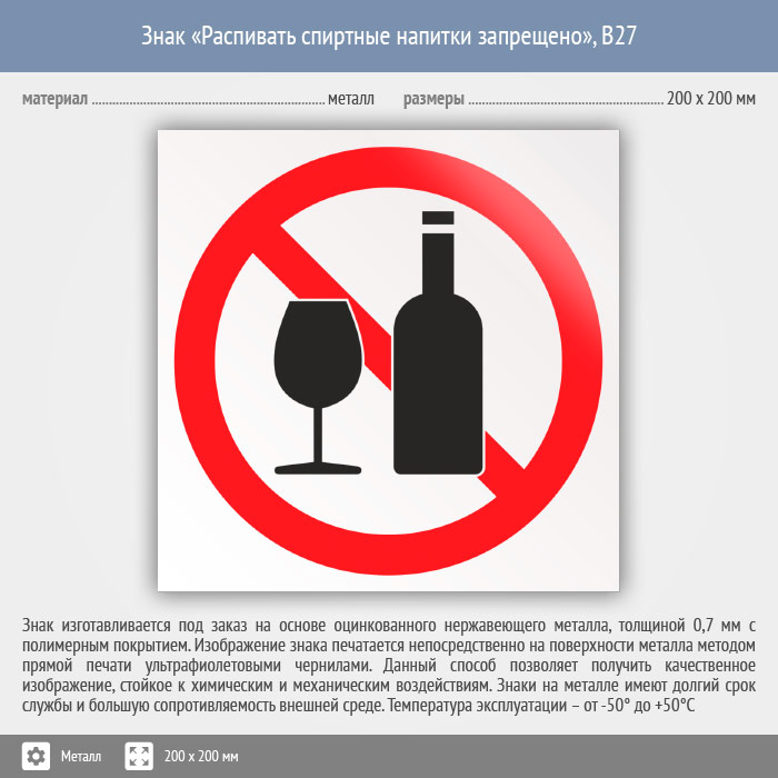 Знак «Распивать спиртные напитки запрещено», B27 (металл, 200х200 мм) в Бердске купить