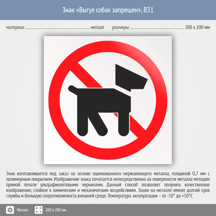 Знак «Выгул собак запрещен», B31 (металл, 200х200 мм) в Бердске купить
