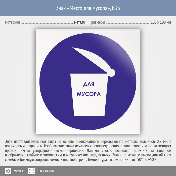 Знак «Место для мусора», B33 (металл, 100х100 мм) в Бердске купить
