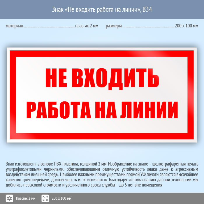 Знак «Не входить работа на линии», B34 (пластик, 200х100 мм) в Бердске купить