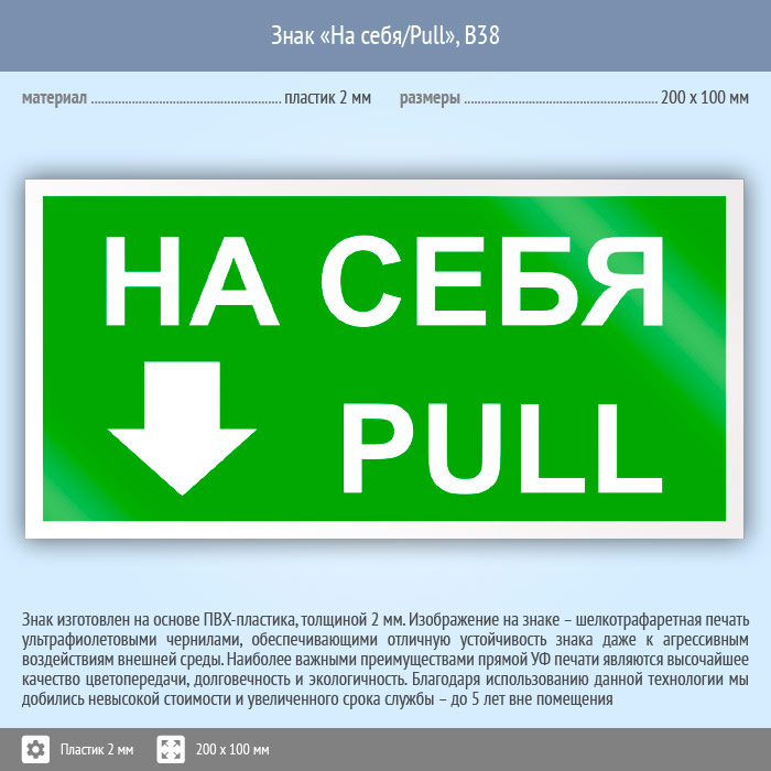 Знак «На себя/Pull», B38 (пластик, 200х100 мм) в Бердске купить