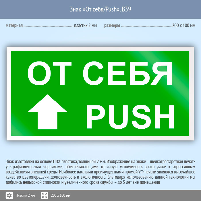 Знак «От себя/Push», B39 (пластик, 200х100 мм) в Бердске купить