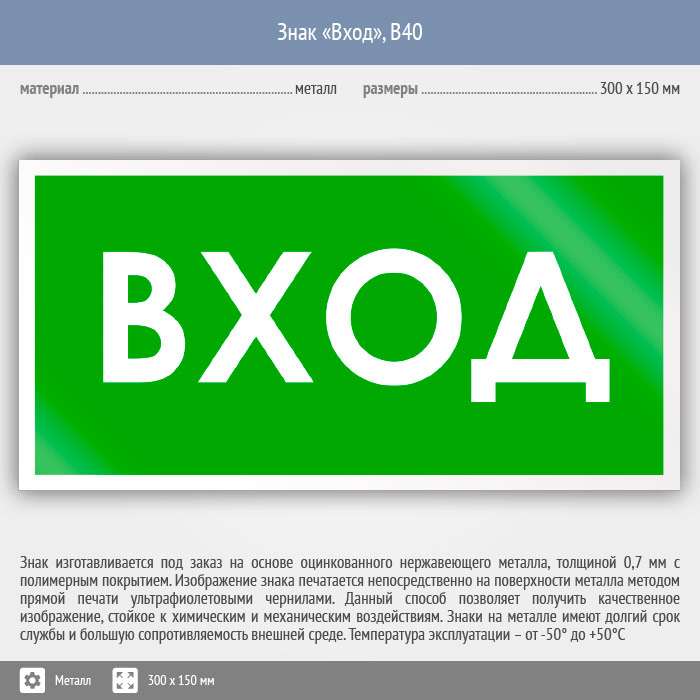 Знак «Вход», B40 (металл, 300х150 мм) в Бердске купить