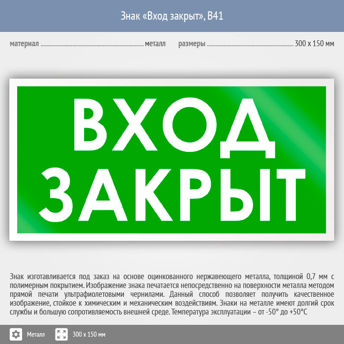 Знак «Вход закрыт», B41 (металл, 300х150 мм) в Бердске купить