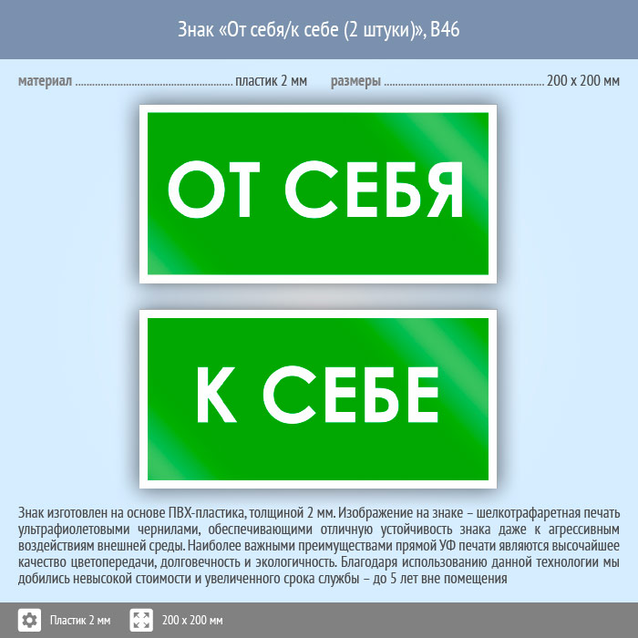 Знак «От себя/к себе», B46 (2 штуки, пластик, 200х100 мм) в Бердске купить