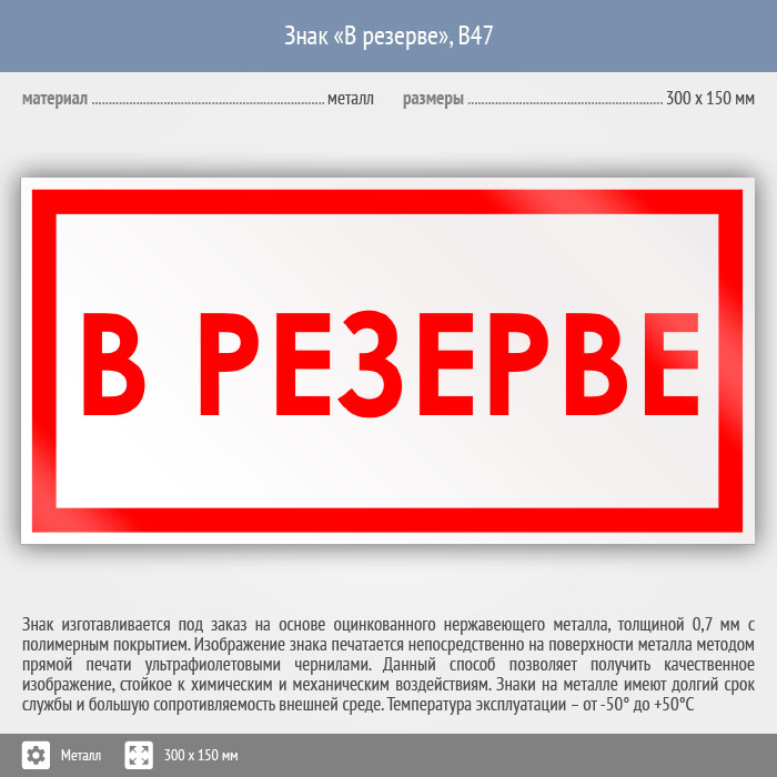 Знак «В резерве», B47 (металл, 300х150 мм) в Бердске купить