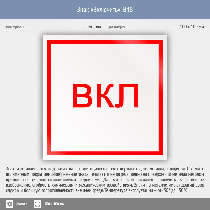 Знак «Включить», B48 (металл, 100х100 мм) в Бердске купить