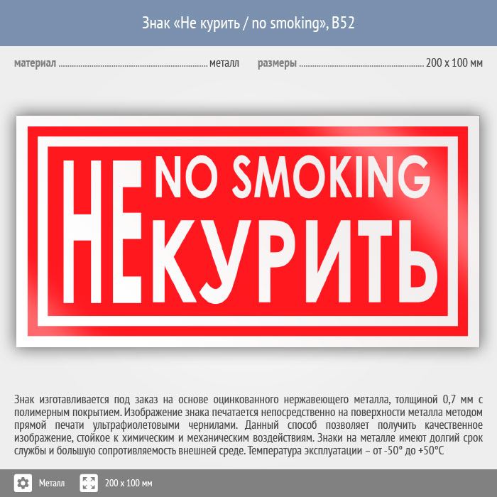Знак «Не курить / no smoking», B52 (металл, 200х100 мм) в Бердске купить