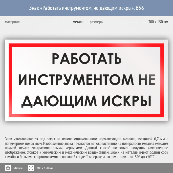 Знак «Работать инструментом, не дающим искры», B56 (металл, 300х150 мм) в Бердске купить