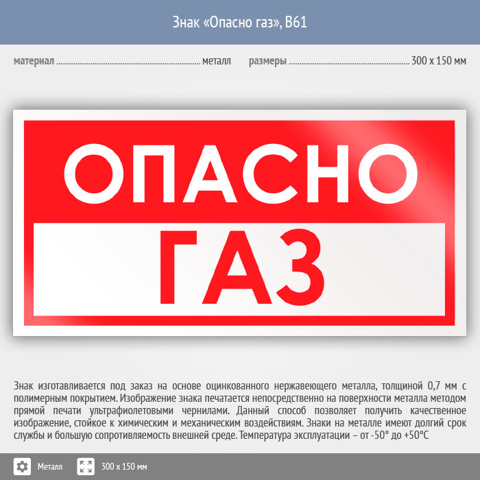 Знак «Опасно газ», B61 (металл, 300х150 мм) в Бердске купить