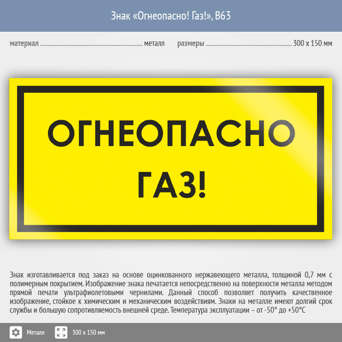 Знак «Огнеопасно! Газ!», B63 (металл, 300х150 мм) в Бердске купить