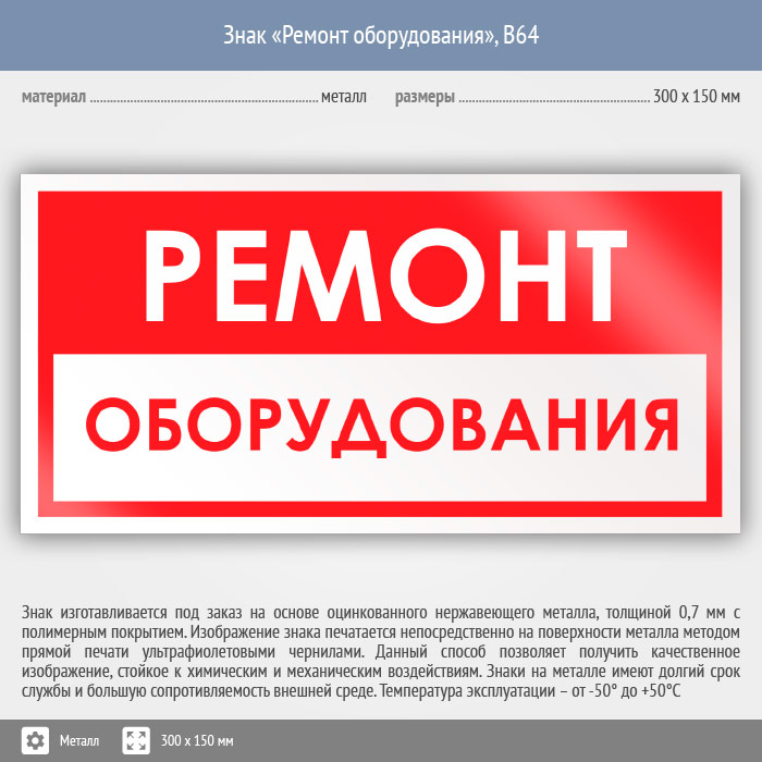 Знак «Ремонт оборудования», B64 (металл, 300х150 мм) в Бердске купить
