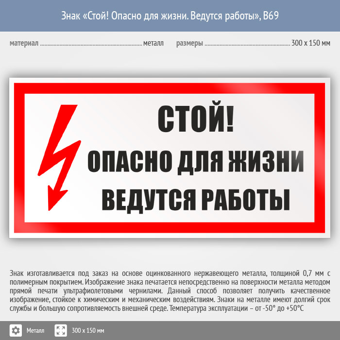 Знак «Стой! Опасно для жизни. Ведутся работы», B69 (металл, 300х150 мм) в Бердске купить