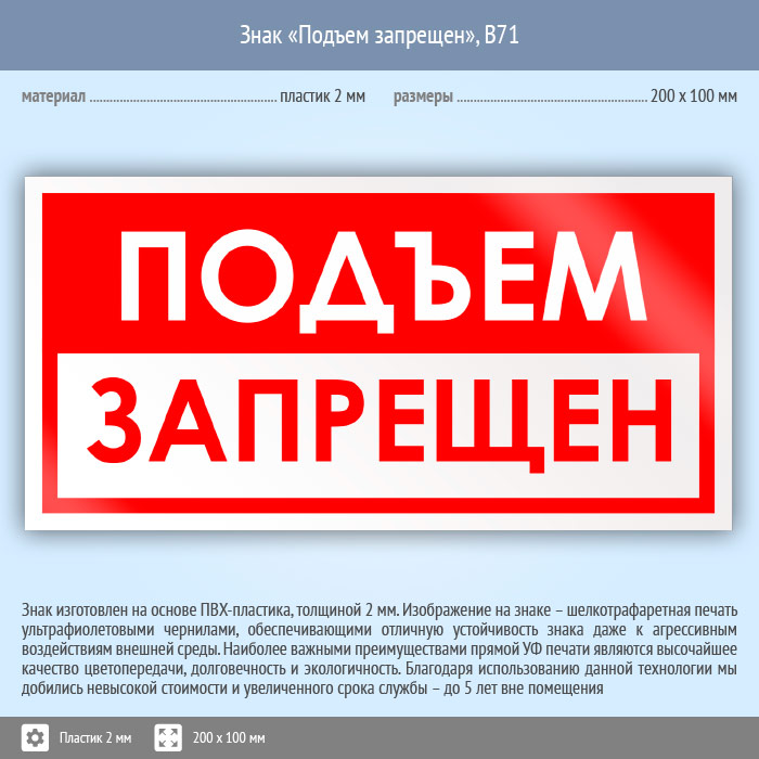 Знак «Подъем запрещен», B71 (пластик, 200х100 мм) в Бердске купить