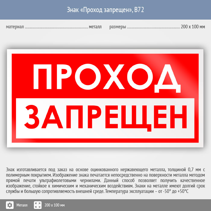 Знак «Проход запрещен», B72 (металл, 200х100 мм) в Бердске купить
