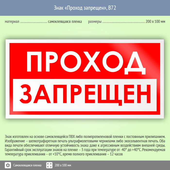 Знак «Проход запрещен», B72 (пленка, 200х100 мм) в Бердске купить