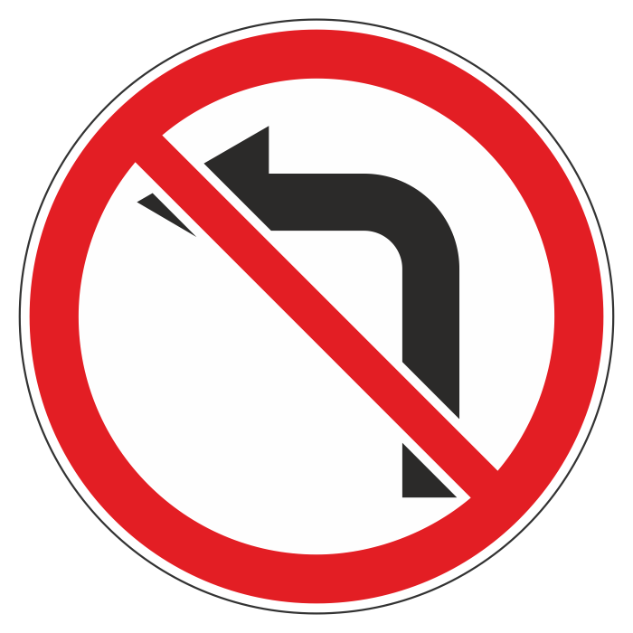 Дорожный знак 3.18.2 «Поворот налево запрещен» (металл 0,8 мм, I типоразмер: диаметр 600 мм, С/О пленка: тип А инженерная) в Бердске купить
