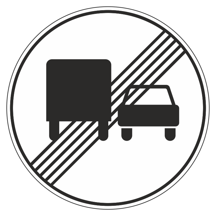Дорожный знак 3.23 «Конец зоны запрещения обгона грузовым автомобилям» (металл 0,8 мм, II типоразмер: диаметр 700 мм, С/О пленка: тип В алмазная) в Бердске купить