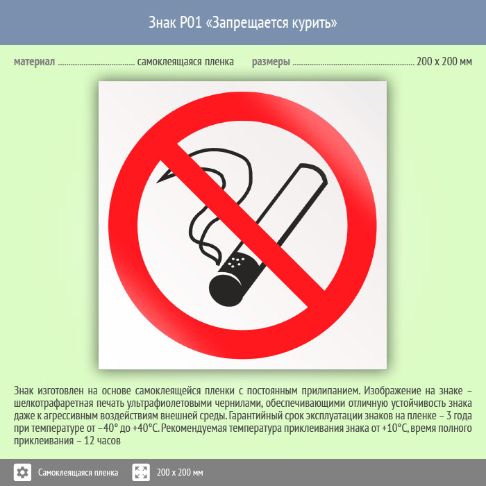 Знак P01 «Запрещается курить» (пленка, 200х200 мм) в Бердске купить