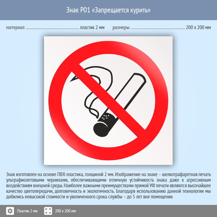 Знак P01 «Запрещается курить» (пластик, 200х200 мм) в Бердске купить