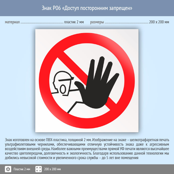 Знак P06 «Доступ посторонним запрещен» (пластик, 200х200 мм) в Бердске купить