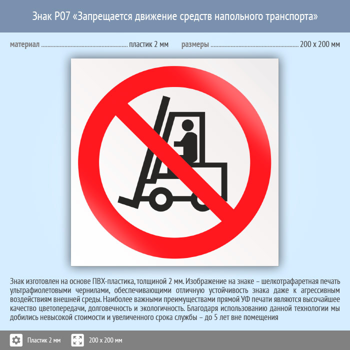 Знак P07 «Запрещается движение средств напольного транспорта» (пластик, 200х200 мм) в Бердске купить