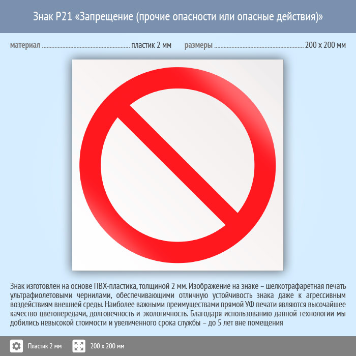 Знак P21 «запрещение (прочие опасности или опасные действия)» (пластик, 200х200 мм) в Бердске купить