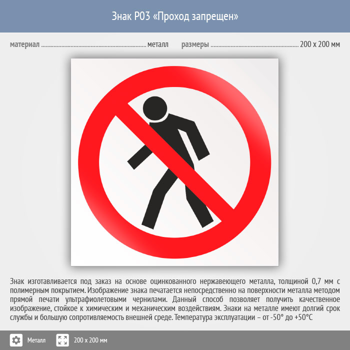 Знак P03 «Проход запрещен» (металл, 200х200 мм) в Бердске купить