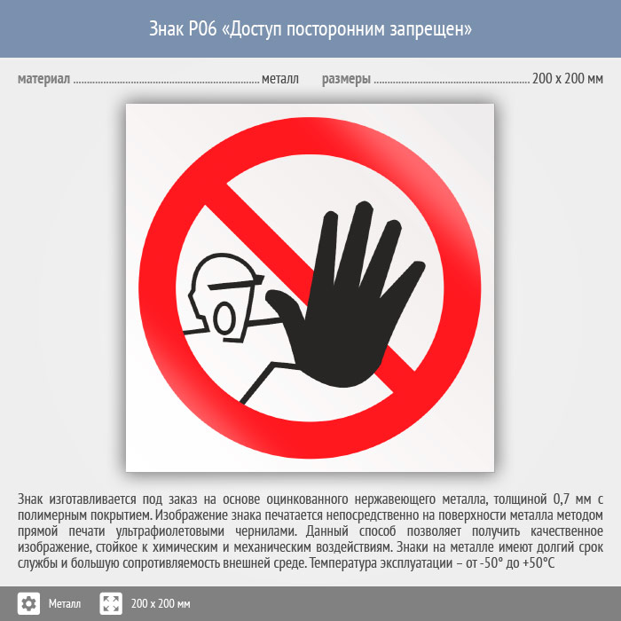 Знак P06 «Доступ посторонним запрещен» (металл, 200х200 мм) в Бердске купить