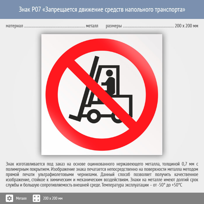 Знак P07 «Запрещается движение средств напольного транспорта» (металл, 200х200 мм) в Бердске купить
