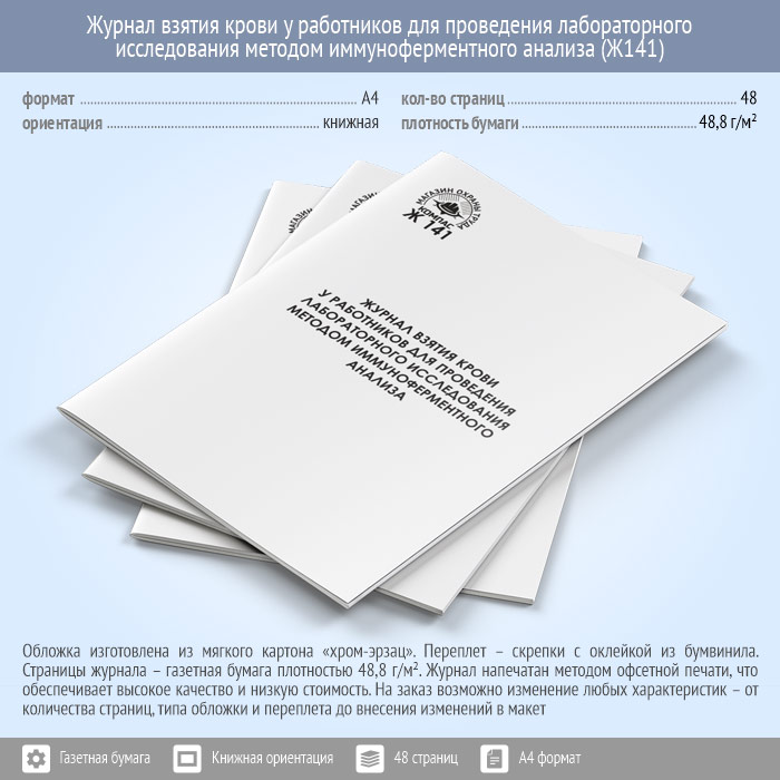 Журнал взятия крови у работников для проведения лабораторного исследования методом иммуноферментного анализа (48 стр., Ж141) в Бердске купить